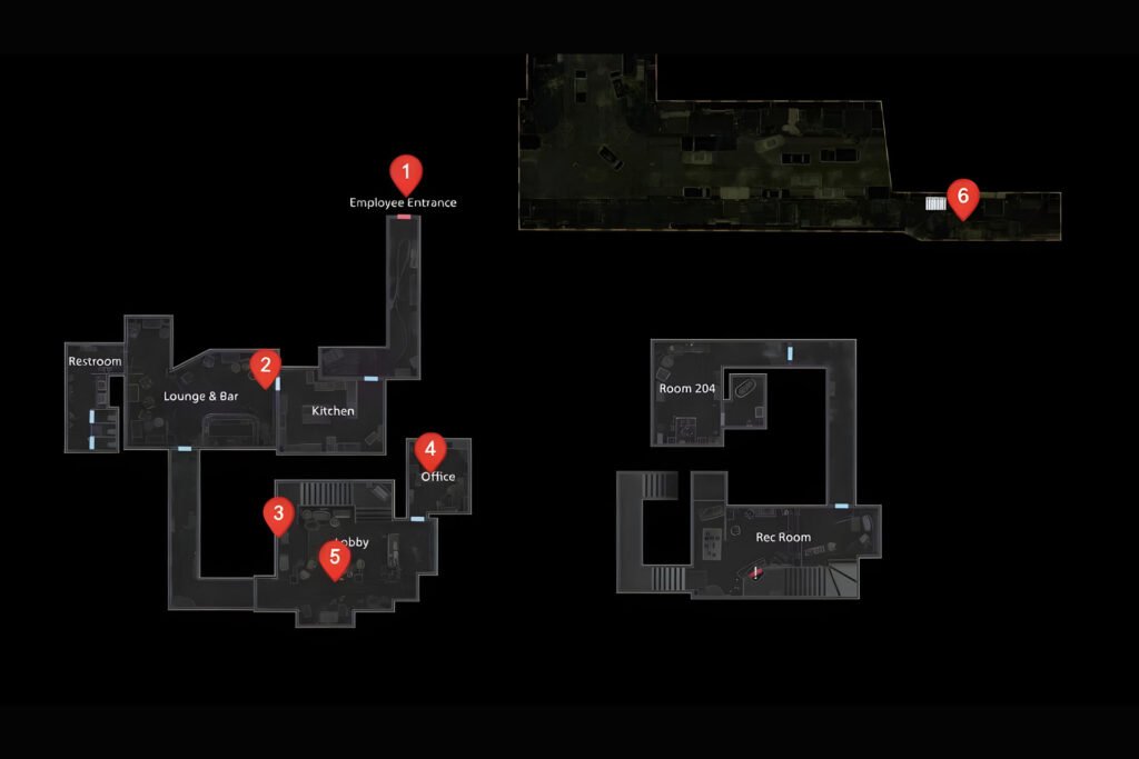 - Bar & Lounge Safe Code: On the office table.