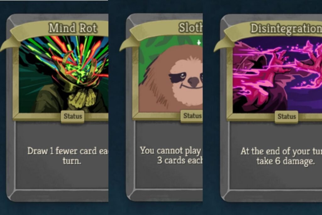 Unlike the first time, there will be more possible status cards. Sap, which lowers your max Energy, and Sloth, which limits you to use three cards a turn.