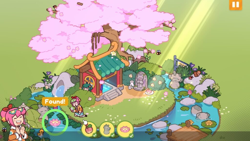 The first object you have to find is Ducky’s Hat. This is just on the cherry blossom tree behind the shrine. Once you found the hat, you have to click on Ducky to return it to him, which will be the same process for all the objects you’ll find.