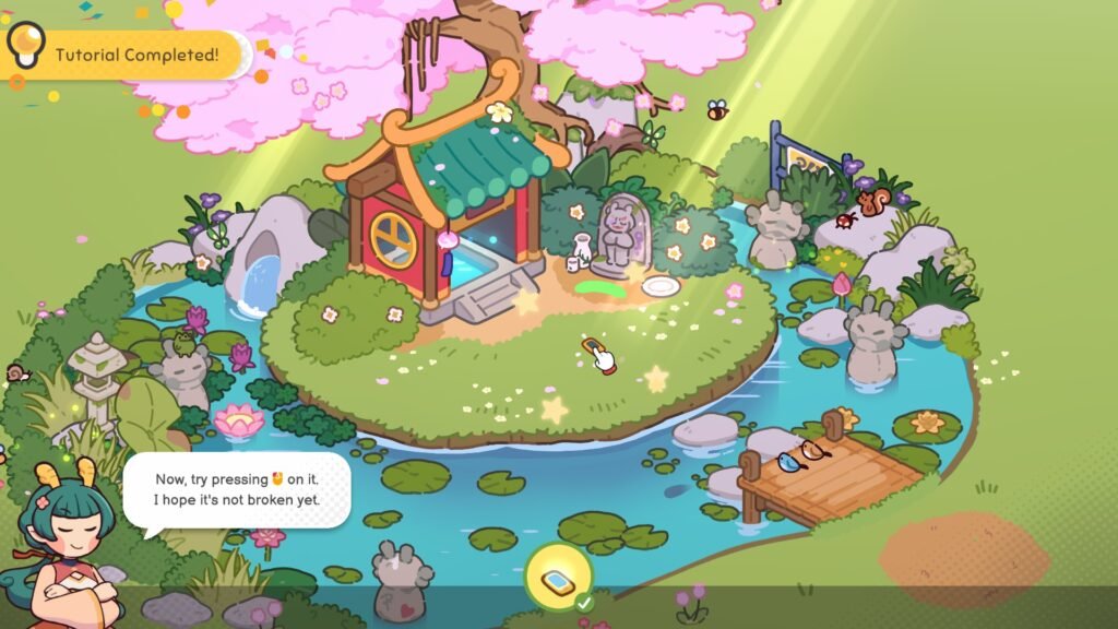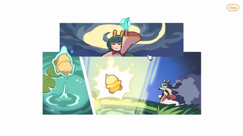 Once you’ve done that and learned how to play the game, a cutscene plays where Goddess Mei transforms Ducky into his human version, beginning the duo’s adventure together and ending Chapter 1.