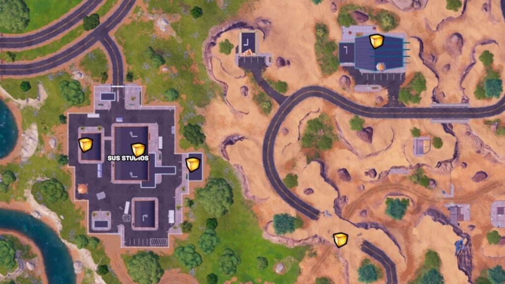 Sus Studios is a movie set area with multiple stages. The cubes are spread across each stage.