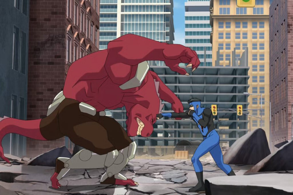 Upon meeting Mark, Conquest is disappointed and enraged by Mark’s lack of progress. Pile that on with Mark’s devastation over the destruction and deaths around him, and he then charges at Conquest and begins their battle, which continues through episode 8, Invincible Season 3’s finale.