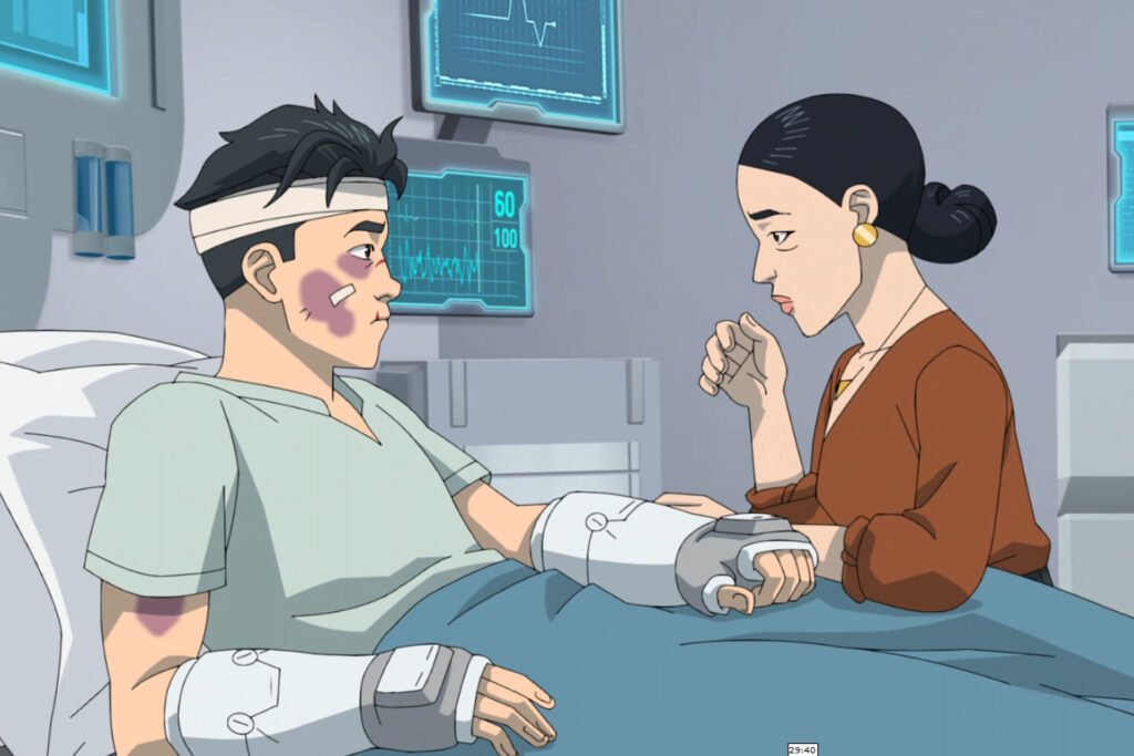 First off, you need to have some context on how Mark got his robot limbs. Going back to the seventh episode of Invincible Season 3, you can recall that the world has just been fresh out of the attack from Angstrom Levy and the Invincible variants.