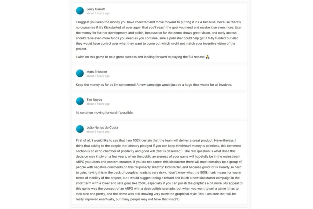 There are almost a hundred comments under the dev update, and almost all unanimously agree that the devs should keep the funds instead of relaunching the campaign.