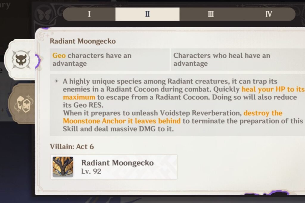 The Radiant Moongecko is a recent addition to the Radiant Beasts family, and can be a nuisance if you don’t have the right elements. You need to heal to max to counter its Radiant Cocoon. Furina, Barbara, Xilonen, and Escoffier have great healing for that.