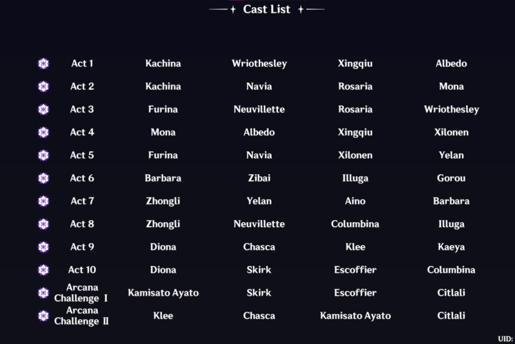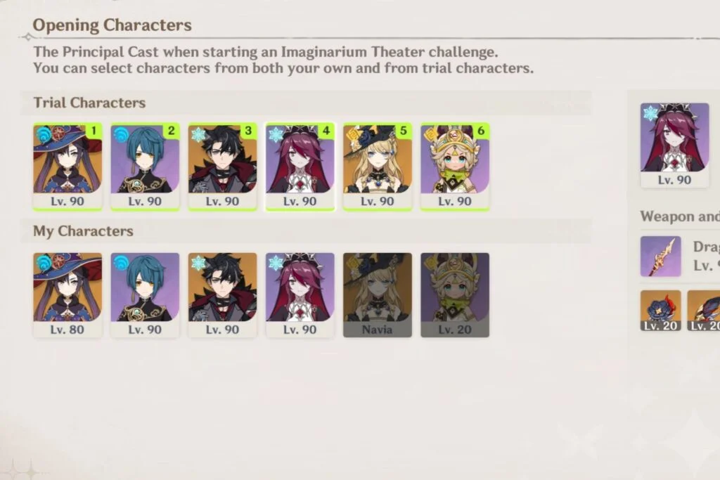 Wriothesley is an okay Cryo DPS here, while Rosaria is a good support. Navia is a great DPS with the right supports, whereas Kachina is a good Cinder City holder. If you are using them with their trial builds, they will struggle in later stages, so use them early on.