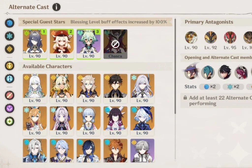 The Special Guest Stars lineup is… weird to say the least. There is Lauma, but without some of the Electro or Pyro characters, her synergy is very restricted.
