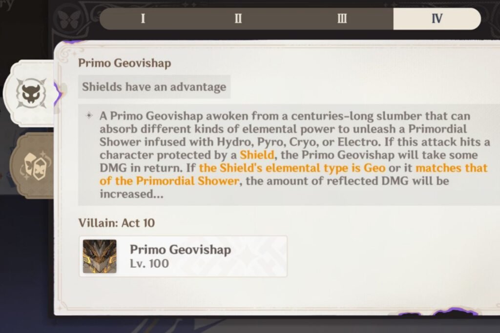 Let the Geovishap hit you once while you have an elemental aura on yourself, so it can generate a crystal. Pick it up and don’t let it deplete, so you can use it as a shield to counter the big hit.